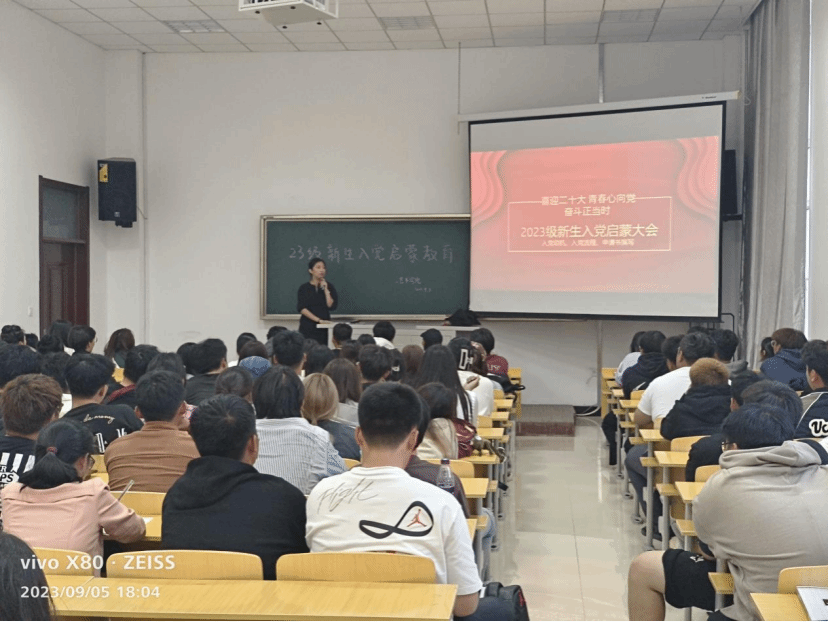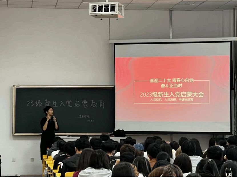 2023年9月5日晚18点,yl6809永利集团2023级新生入党启蒙教育大会在美术楼104教室举行。本次活动由yl6809永利集团大学生党支部书记吕明珠老师主讲,主题是“坚定入党信念,打好奋斗底色”。吕明珠老师从党的发展历程、入党申请书的撰写、入党流程和建设远大理想抱负四个方面进行了深入解读和讲解。