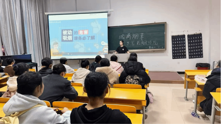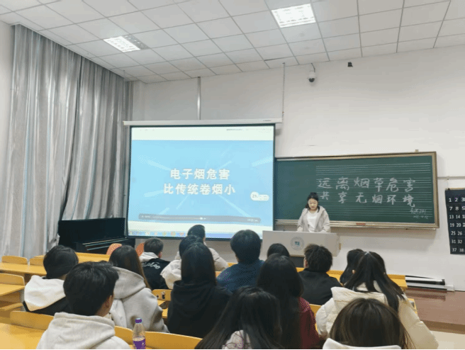 活动开始,各班团支书通过专题讲座、宣传展板、科普手册等方式,对同学们进行控烟知识科普以及介绍烟草及电子烟的危害、成瘾机制及戒烟方法。重点强调了吸烟对身体健康、学习效率及心理健康的影响。接着运用互动体验与创意宣传的方式,设置“吸烟危害模拟体验”“控烟知识问答”等互动环节,增强学生参与感。通过观看视频、现场互动,同学们认识到烟草广告的误导性,学会了辨别电子烟厂商的营销话术。
