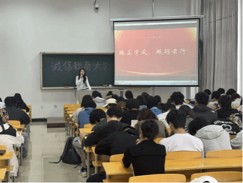 会上,诚信教育成为贯穿始终的核心主线。辅导员们以详实案例为镜鉴,深入浅出地阐释诚信对于学生的重要意义,她们强调,在学业规划环节,学生要秉持真诚态度锚定奋斗目标,以踏实勤勉的姿态参与学术活动与专业竞赛,在磨砺中精进技艺;面对考试这一检验学业成果的重要关卡,全体学生须以敬畏之心严守考场纪律,坚决向任何形式的作弊行为说“不”,共同守护知识殿堂的纯粹与庄严。此外,辅导员还从学业、生活多维度延伸诚信教育内涵,倡导将诚信理念融入日常创作、人际交往等方方面面。