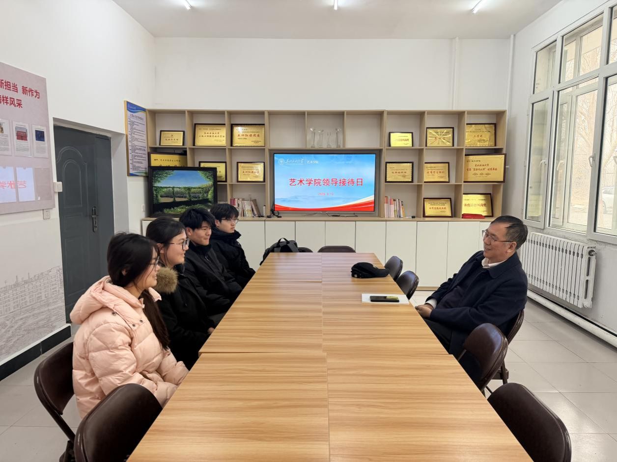 接待现场,学生代表们结合自身学习生活实际,敞开心扉、踊跃发言。大家围绕专业课程设置、实践教学安排、校园文化活动开展、就业方向指引以及学习生活保障等方面提出了自己的疑问与建议,张金辉书记认真倾听每一位学生代表的发言,详细记录相关诉求与建议,对学生们关心的问题逐一耐心回应、细致解答。同时,他结合艺术专业特点,鼓励学生们珍惜学习时光,深耕专业技能,积极参与实践活动,勇于表达自身需求,主动为学院发展建言献策,努力成长为兼具专业素养与责任担当的新时代艺术人才。