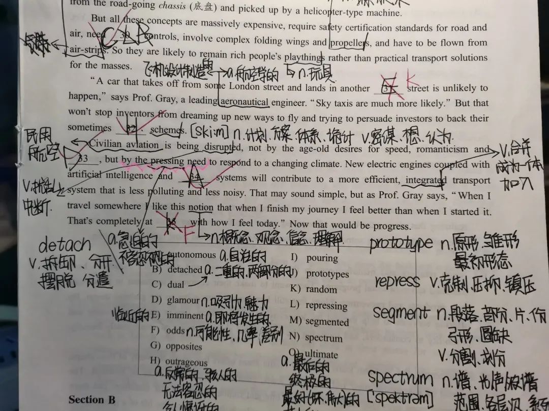 2.学会精读:平时阅读练习不要只是简单的统计一下正确率,按照解析找答案出处。推荐同学们在做完题后,回过头来进行精读。具体步骤就是梳理整篇文章脉络,划分结构,整理文章的生词(结合文章语境了解用法,加深记忆),尤其关注文章中的一些转折词还有过渡句(往往是出题点),这个过程你也可以学习写作思路,文章如何进行过渡,以及在特定语境中单词的地道表达。