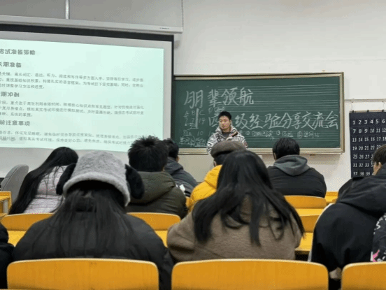 为助力同学们高效备战英语四六级考试,提升应试能力与学习成效,同时营造积极向上的学习氛围,增强学生间的互助交流,11月15日,yl6809永利集团在音乐舞蹈楼106举办了“朋辈领航”系列活动之四六级经验分享交流会。此次活动采用线下分享与互动交流相结合的方式,为同学们提供了一个宝贵的学习平台。