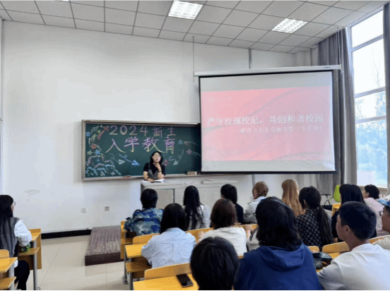 最后,张丽坤书记对学院学生日常管理相关安排进行了详细介绍,从自身多年工作经验出发,举例子摆事实,从生活适应、人际适应、学习适应和角色适应等几个方面开展新生适应性教育,并且叮嘱学生注意身体健康,养成良好习惯,积极参加实践活动,锻炼自己,同时也要注重学业,制定好学习目标,规划好自己的未来。
