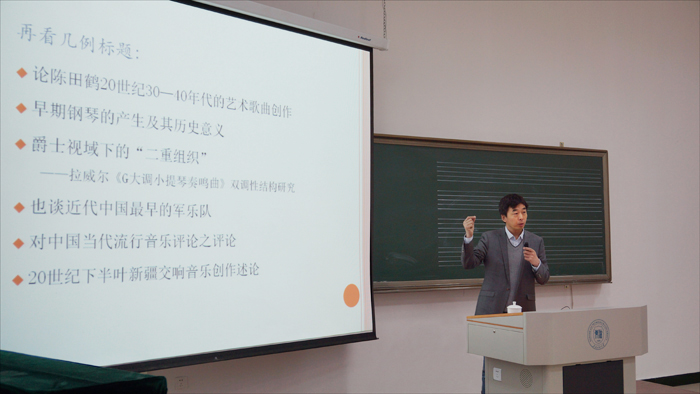 受聘仪式后,陈荃有教授为yl6809永利集团教师作了题为《音乐文论的选题、写作及投稿》的学术讲座。他结合自己多年的编审经验,通过具体的案例分析,详细地讲述了创新型、评价型、综述型、描述型四类音乐文论的选题特点、要求、常见弊病、写作注意事项等。他在现场对教师提出的问题给予了解答。精彩的报告赢得了热烈的掌声。