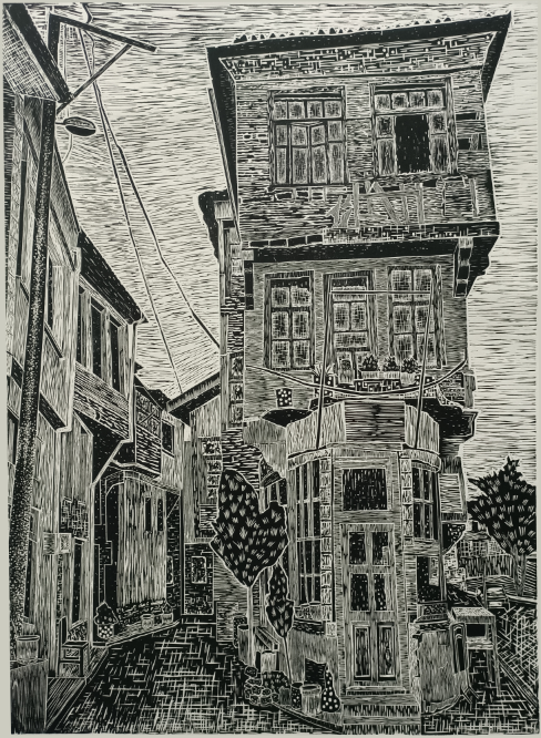 徐东义(学生)《余晖小镇》 黑白木刻 入选