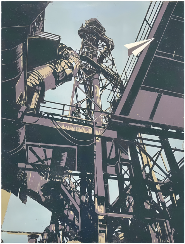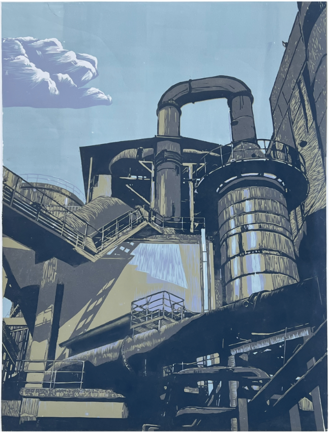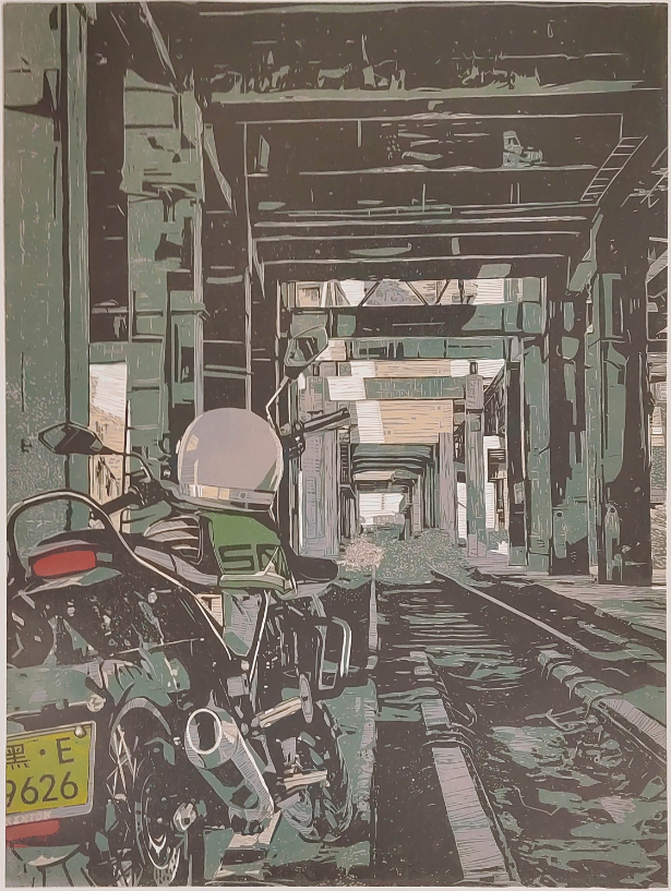 胡梦雯(学生)《光影工业》 套色木刻 入选