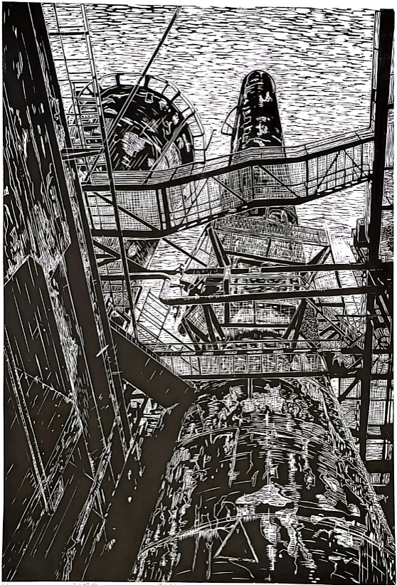 李咏琪(学生)《工业记忆》 黑白木刻 入选