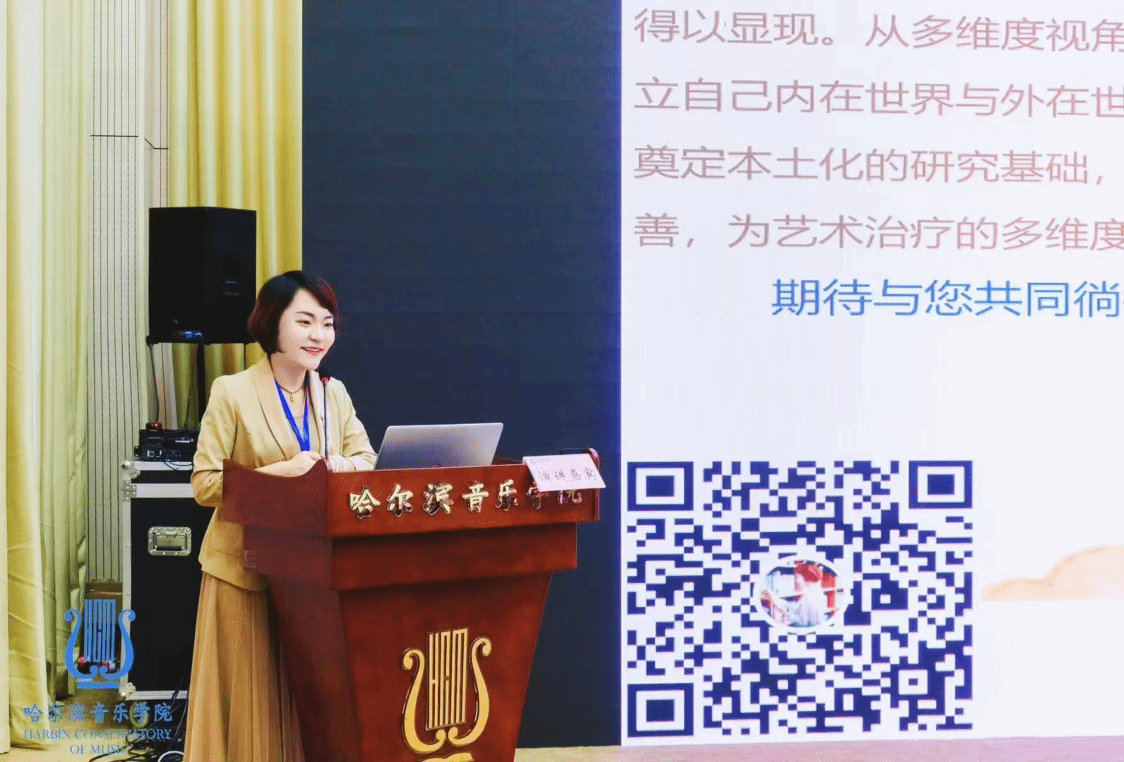 2024年11月23日yl6809永利集团闫红副教授受邀参加在哈尔滨音乐学院举办的—中国哈尔滨·首届“艺术与科学”学术前沿问题国际论坛,并在专题论坛中作《艺境聆心—整合艺术疗愈在不同群体中的多维度探索及实践应用》主题发言。