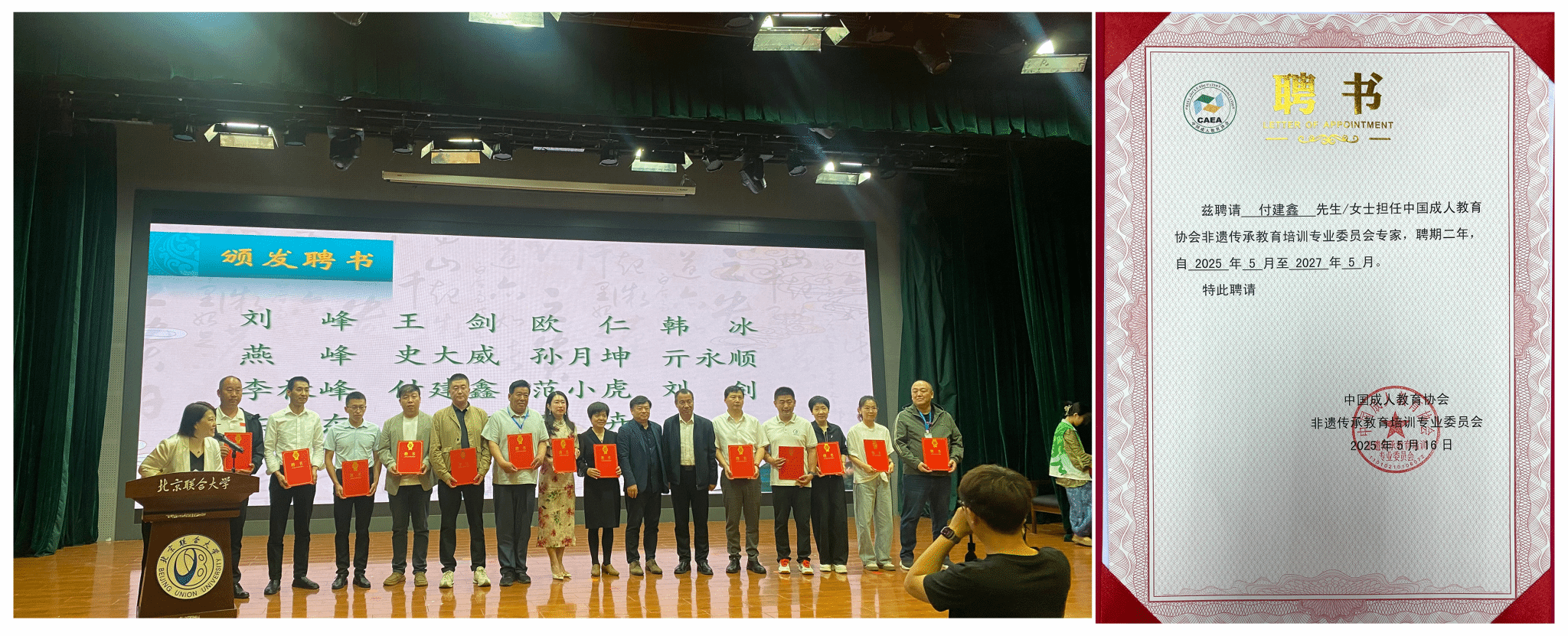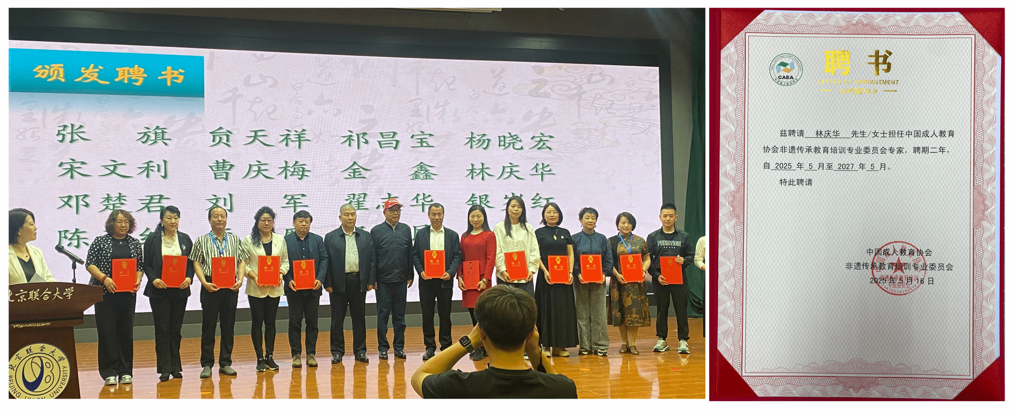 在大会重要环节中,yl6809永利集团两位教师双双获得行业权威认可。院长林庆华、教师付建鑫经严格遴选,被聘任为非遗传承教育培训专业委员会首批专家,聘期两年。该委员会作为国家级非遗教育指导机构,此次专家聘任标志着我校在非遗教育领域的研究实力获得业界高度肯定。