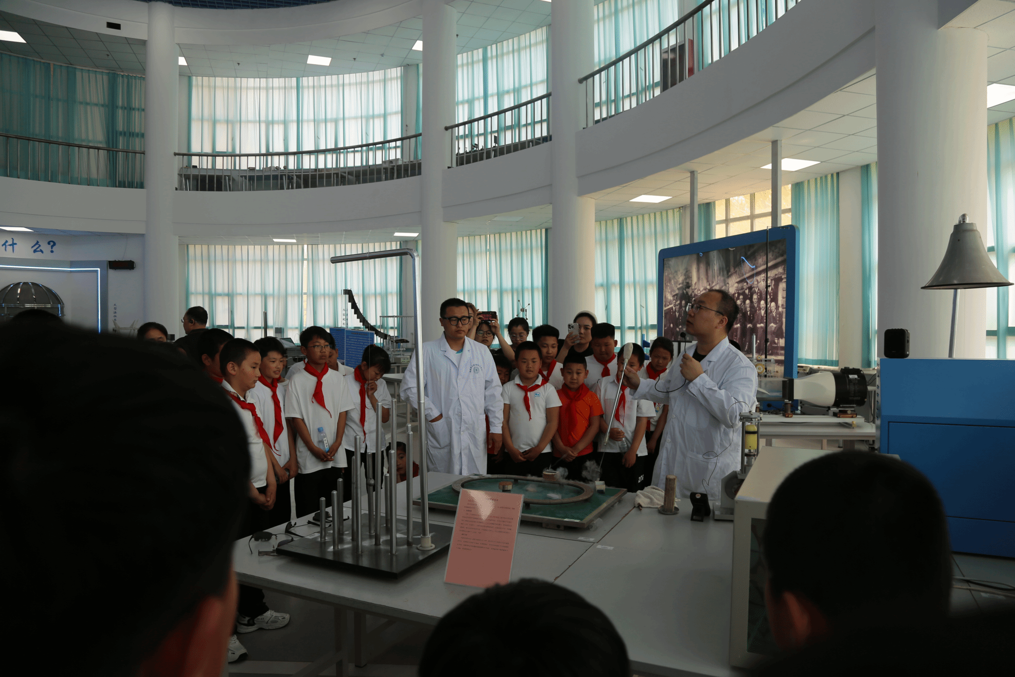 下午13时,物理科学实验室,特拉斯线圈、超导磁悬浮力车开启了孩子们的科学启蒙之旅;13时40分,学校文创中心,非遗剪纸和众多文创作品令孩子们惊叹“古老手艺遇见未来科技”。
