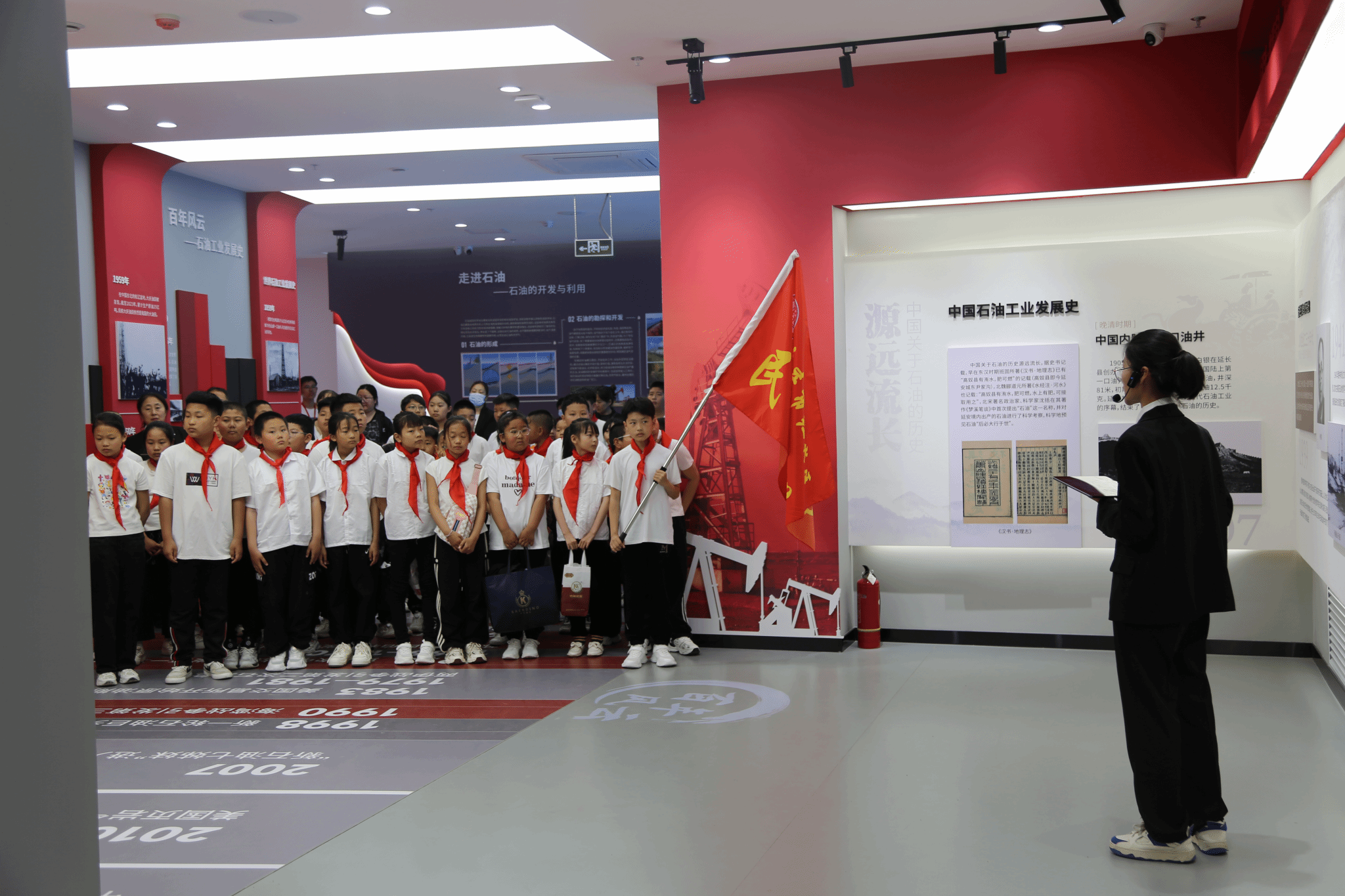 上午9时,师生们参观大庆精神育人展馆。泛黄的钻头、手抄的《铁人日记》、复刻的“干打垒”建筑模型,将六十年前的奋斗史诗娓娓道来。