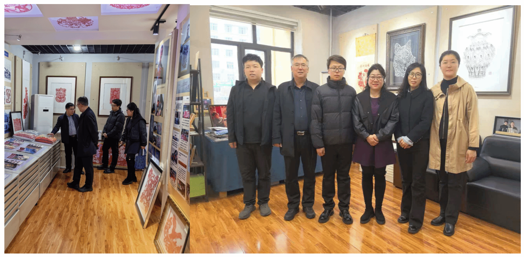 在与艺术设计学院的研讨过程中,双方围绕非物质文化遗产传承与特色课程深度融合、AI技术赋能设计教学与实习实践体系构建、科研平台建设与产教融合育人机制创新等前沿议题深入交流。双方结合教学实践,分享了数字化设计教学、非遗创新、校企合作等经验做法,围绕应用型艺术设计人才培养展开热烈讨论。会后,调研团队实地参观了非遗剪纸工作室与陶艺创作工作室。