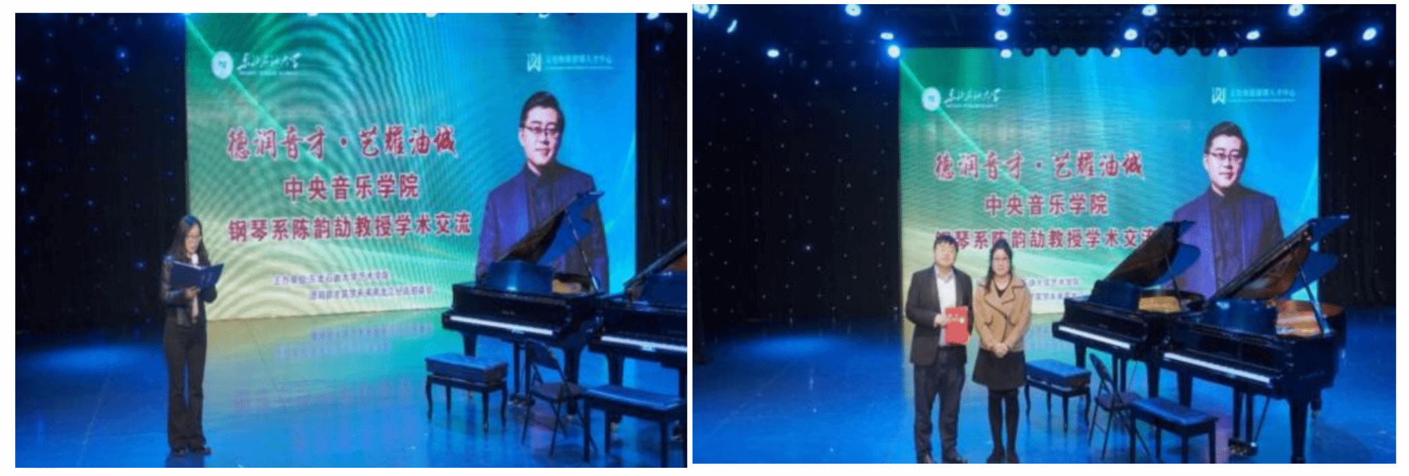 本次交流活动由王靖一副院长主持。为加强我院师资队伍建设、推动优秀艺术人才培养,林庆华院长向陈韵劼教授颁发聘书,正式聘任其为键盘专业特聘教授。